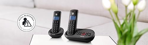 Motorola Voice - E212 2 Telefoni Cordless Digitali con Segreteria Telefonica, Fino a 12 Minuti di Registrazione Segreteria, Intercettazione Chiamate, Tasto Non Disturbare, Nero