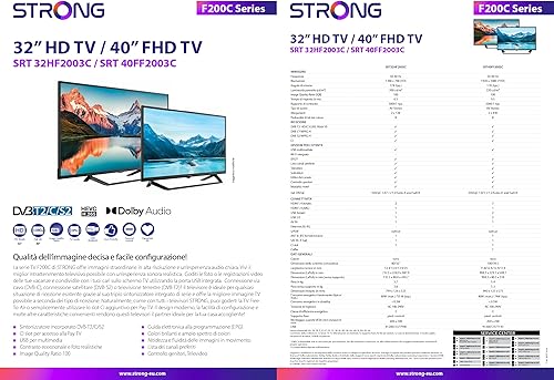 Strong SRT40FF2003C tv 40 pollici stand centrale hotel mode semplice da usare. Con Decoder digitale terrestre T2 incorporato. Possibile sistemazione su superfici ristrette o a muro