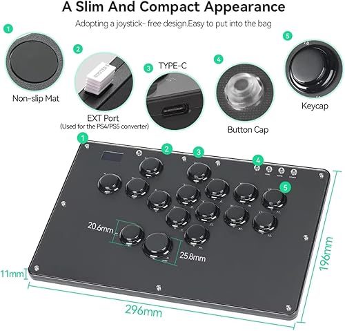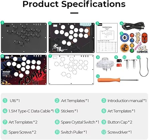 Tastiera da gioco U16 All-Button con Custom RGB & Turbo Functions, Arcade Stick Tastiera da gioco per PC/Switch/PS4/PS3, supporta hot-swap e SOCD