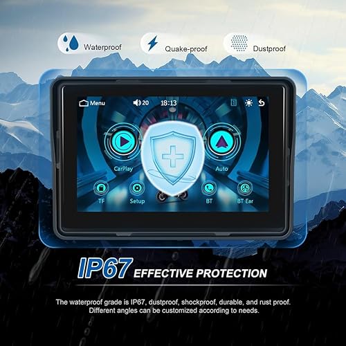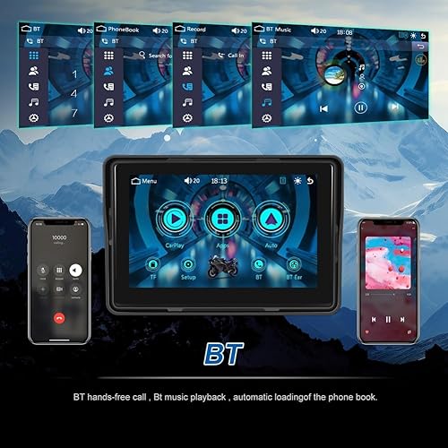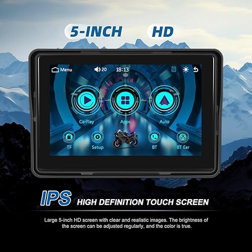 Peowuieu Display di Navigazione GPS per Moto Wireless Carplay Android Auto Monitor Portatile per Moto IP67 Impermeabile