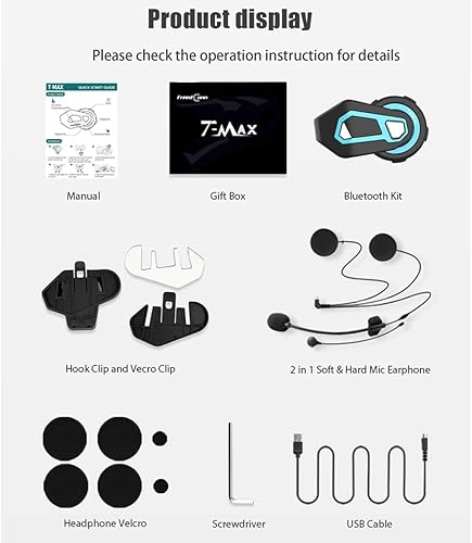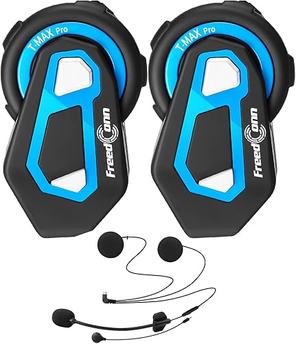 T-MAX Pro interfono moto Intercom moto bluetooth 5.0 Kit di comunicazione cuffie intercomunicanti, Gamma 1000M, supporta 6 membri Connessione simultanea, Radio FM, comando vocale,GPS