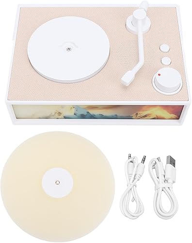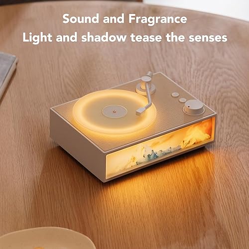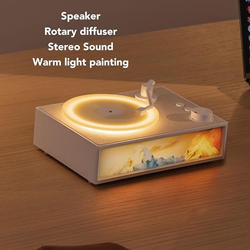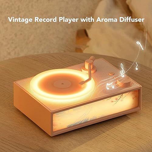 Giradischi Vintage con Diffusore di Aromi, Altoparlanti Stereo Giradischi Bluetooth 5.3 HiFi con Cavo Audio da 3,5 Mm, Giradischi Wireless Portatile Leggero (WHITE)