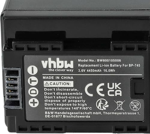 vhbw 1x batteria compatibile con Canon Vixia HF M50, HF M52, HF M500, HF R30 videocamera camcorder (4450mAh, 3,6V, Li-Ion) con infochip