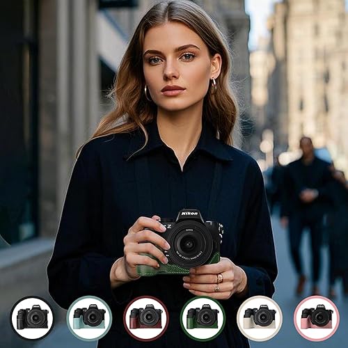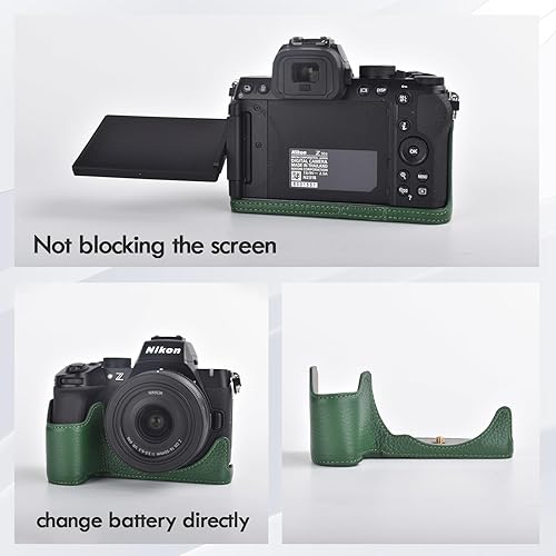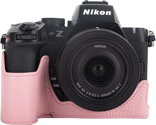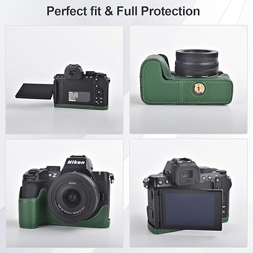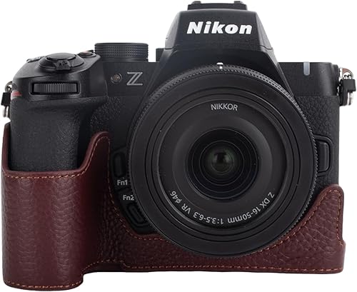 Rieibi Mezza custodia fatta a mano in vera pelle per fotocamera digitale mirrorless Nikon Z50II, custodia protettiva per Nikon Z50 II, Caffè, Custodia per fotocamera