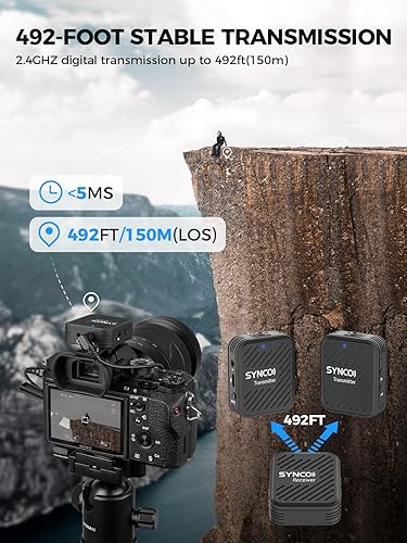 SYNCO G1(A2) Microfono Lavalier Wireless, Radio Microfoni Professionale Senza Fili 2.4GHz per Smartphone, DSLR Reflex, Videocamera, Microfono-Lavalier-Wireless-Professionale-Fotocamera