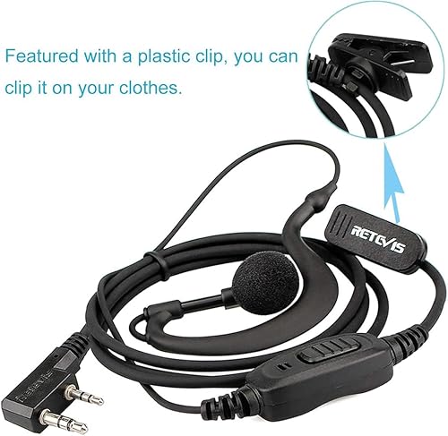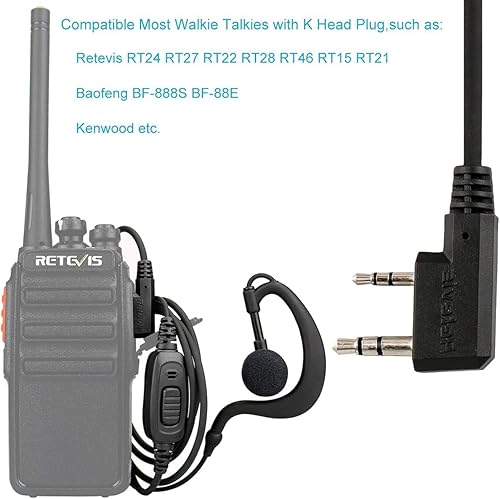 Retevis RE3120 Walkie Talkie Auricolare con Microfono 2 pin tipo C Compatibile con 2 Way Radio RT24 RT28 RT22 RT622 RT27 RT617 RT618 RT619 BaoFeng BF-888S Kenwood Proster (4 PZ)