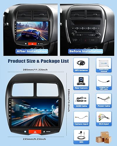 4G+64G Carplay Autoradio per Mitsubishi ASX 1/Citroen C4/Peugeot 4008,Stereo Bluetooth con 10.1 Pollici Touchcreen Android Auto GPS WiFi FM/RDS HiFi Mirror Link+Telecamera