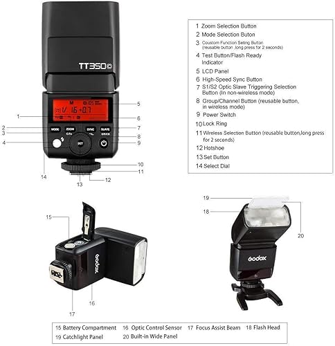 Godox TT350C Flash Speedlite 2,4 G HSS 1/8000s TTL GN36 per Fotocamera Canon 5d Mark III 80D 760D 60D 600D 7D 30D 100D 1100D