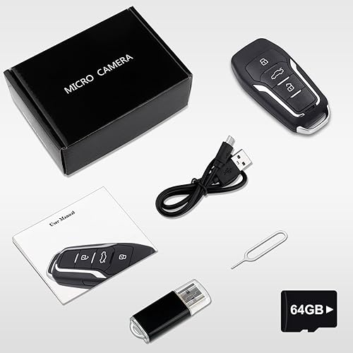64GB Mini Telecamera Chiave Auto, HD 1080P Portatile Piccole Videocamere di Sorveglianza, Microcamera di Sicurezza con Rilevamento del Movimento per la Casa e l'ufficio
