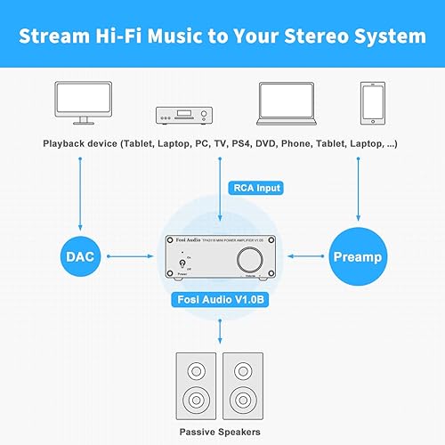 Fosi Audio V1.0B Compatto Amplificatore Audio, Chip TI TPA3116D2, 50Wx2, Mini Amplificatore HiFi Stereo, 2.0 Canali Class D Integrato, Stile Retrò anni '70 e '80, per Sistema HiFi, Diffusori Passivi