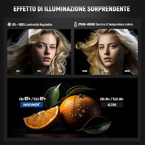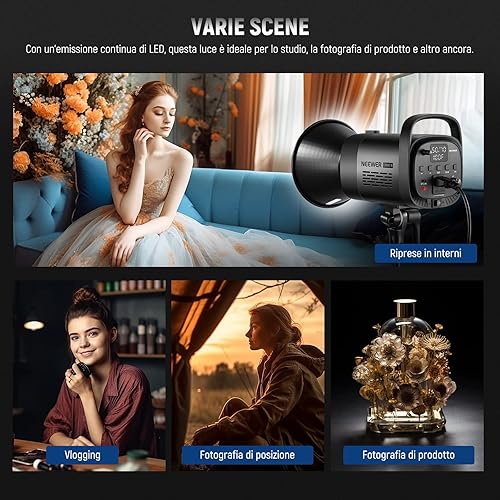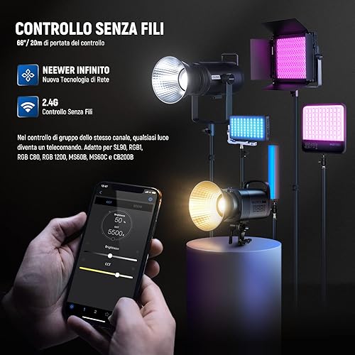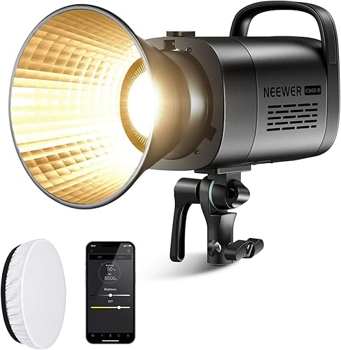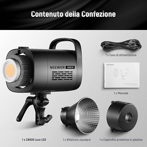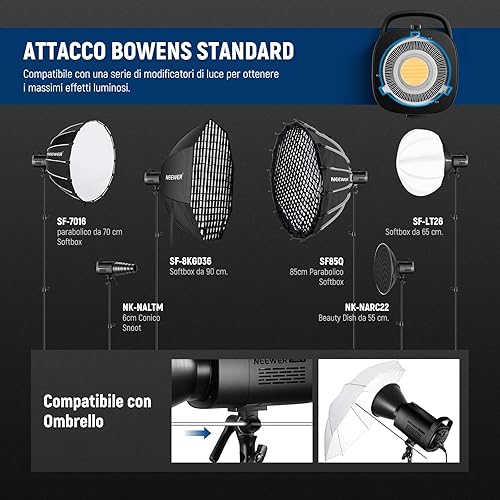 NEEWER CB60B 70W Luce Video LED con Controllo 2,4G/APP COB Bicolore Illuminazione Video Continua Attacco Bowens 2700K-6500K 34000Lux@1m/Modalità CCT/CRI97+/12 Scene per Studio Registrazione Fotografia