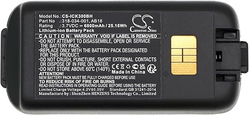 TECHTEK Batterie 6800mAh compatibile con [Intermec] CK3, CK3A, CK3B, CK3C, CK3C1, CK3N, CK3N1, CK3R, CK3X, EDA61K, per [Dolphin] CK65, per [Honeywell] CK65 sostituisce 318-033-001, 318-033-021, 3 FBA