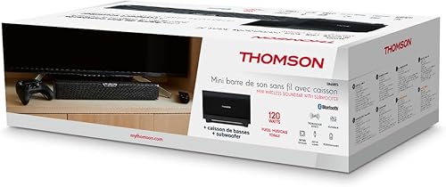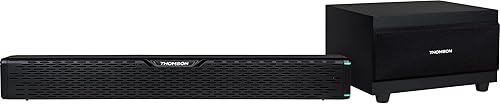 Thomson SB60BTS Soundbar - 120W Potenza Musicale Totale - Bluetooth 5.0 Wireless - Subwoofer Incluso - Montaggio a Parete - Ingresso Ottico & AUX - Telecomando - Design Compatto