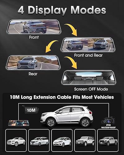 Vtopek Dual 1080P Dash Cam Auto Specchietto Retrovisore Auto con Telecamera 170°+140° Grandangolo 10' Specchietto Retrovisore Dashcam con Visione Notturna G-sensor Registrazione in Loop 10M Cavo