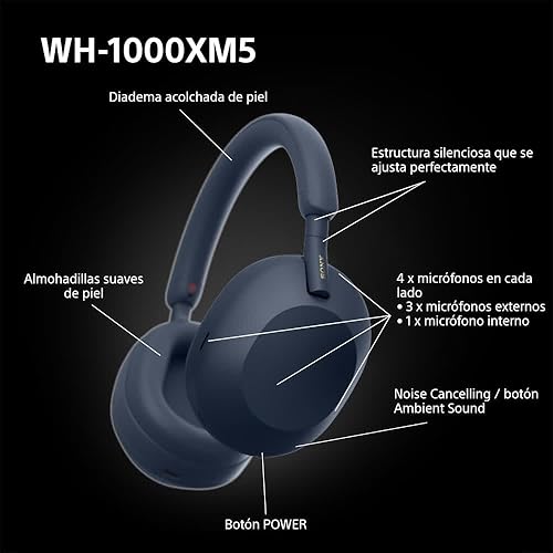 Sony WH-1000XM5 - Cuffie Bluetooth senza fili con riduzione del rumore, 30 ore di autonomia, ottimizzate per Alexa e Google Assistant Blu (ricondizionato)