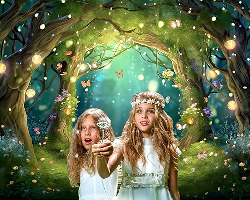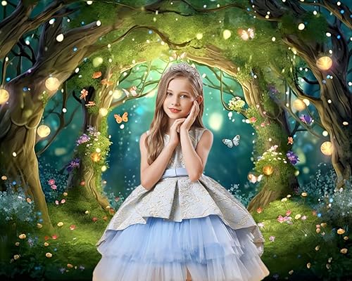 Hnmdmyi 3x2m Sfondo foresta incantata Fantastico paese delle meraviglie bosco farfalla fiori albero sfondo fotografico principessa festa di compleanno neonato baby shower decorazioni
