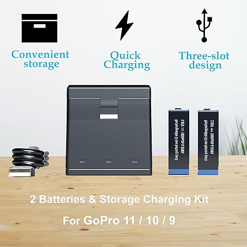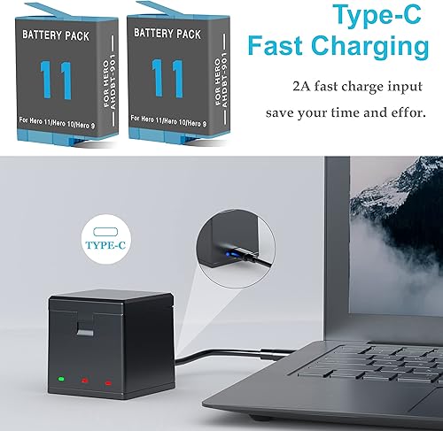 Batteria per Hero 12/11/10/9, Batterie Ricaricabile e Caricabatterie per Hero 12 Hero 11 Hero 10 Hero 9 Mini Creator Edition Black CHDHX-901-XX (1 Caricatore + 2 Batterie)