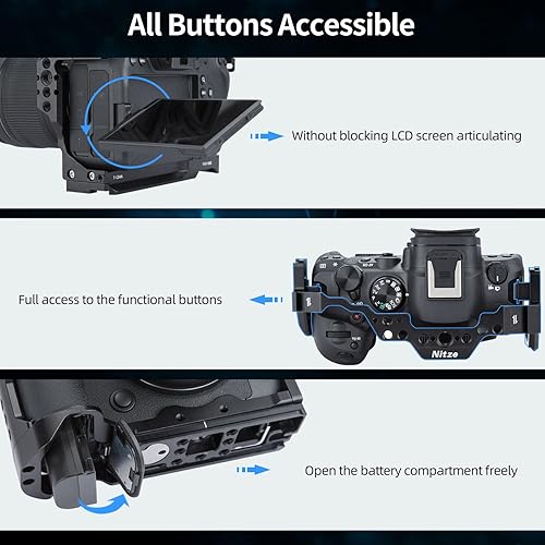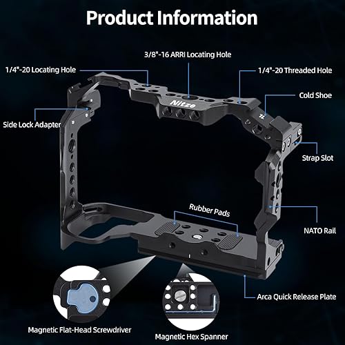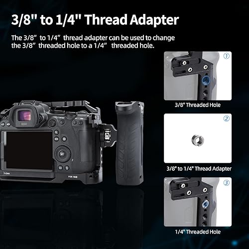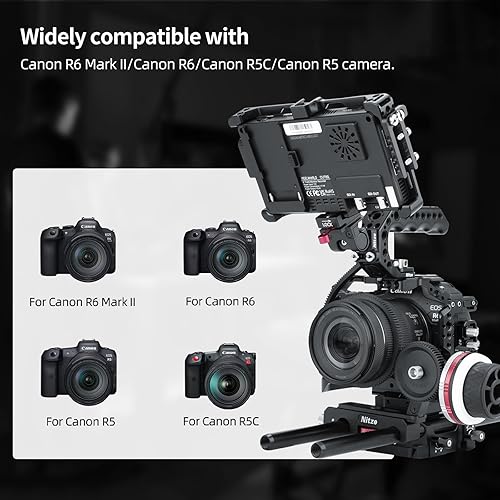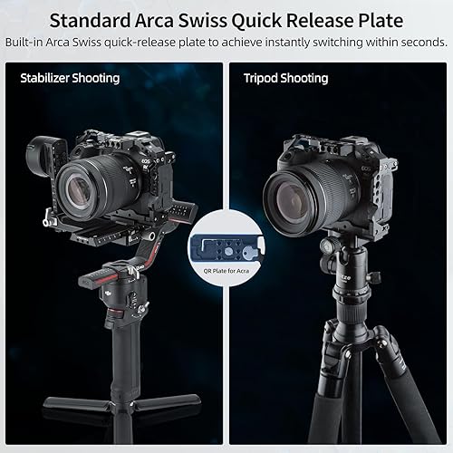 Gabbia Compatibile con Canon EOS R6 Mark II/ R5 C/ R5/ R6 Fotocamera, Camera Cage con Guida NATO Integrata, Doppia Cold Shoe e Piastra Sgancio Rapido Arca - T-C04A