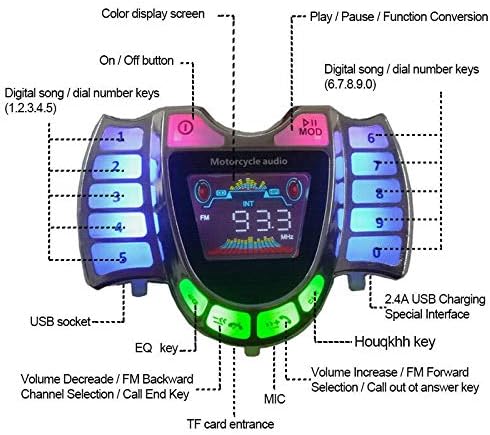 Karriter Altoparlanti stereo per moto, wireless, Bluetooth, lettore MP3, impermeabile, audio FM per moto, scooter, ATV, UTV