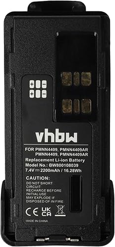 vhbw 5x batteria sostituisce Motorola PMNN4490B, PMNN4491, PMNN4490A per radio (2200mAh, 7,4V, Li-Ion) + clip