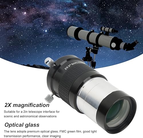 Lente di Barlow 2X, 2 Pollici Lente di Barlow Telescopio Astronomico Lente in Vetro Ottico Premium con Anello Adattatore da 2 Pollici a 1,25 Pollici per Oculare del Telescopio Astronomico