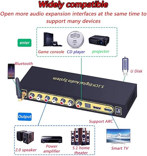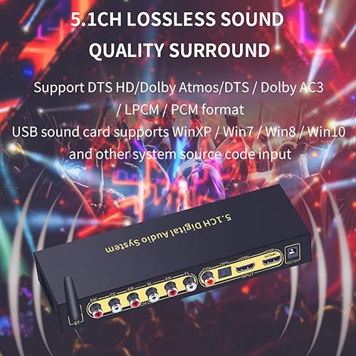 RSGK Decodificatore Audio 5.1, Convertitore Digitale-analogico, Disco U HDMI Bluetooth 5.0 Fibra Ottica Arc Coassiale, Supporto Lettore Blu-Ray PS Computer Set-Top Box E Altri Dispositivi Sorgente