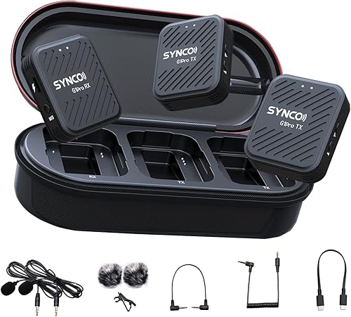 SYNCO G1 (A2) Pro 2.4GHz Microfono Lavalier Wireless con Stazione di Ricarica 1 Ricevitore 2 Microfono Trasmettitore per Fotocamera Youtube TiKTok Vlog Intervista