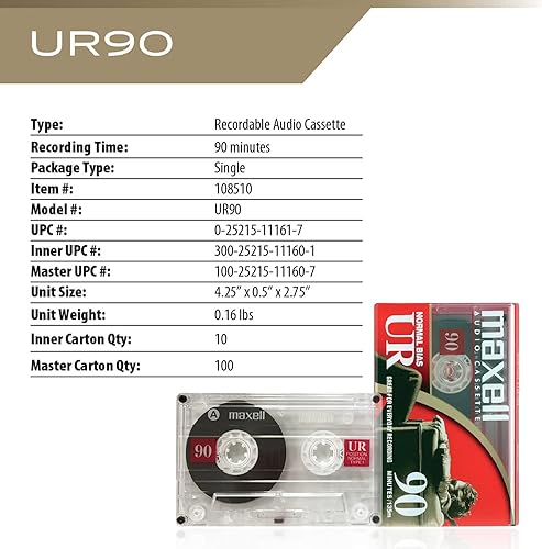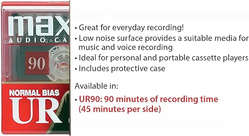Maxell 108527 UR-90 2PK Normal Bias Audio Cassettes 90 Minute with Cases 2 Pack
