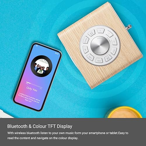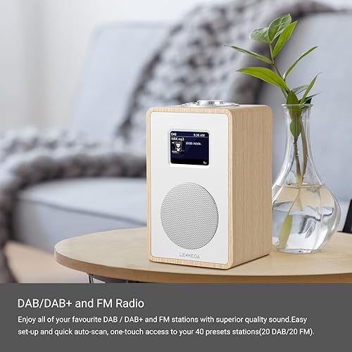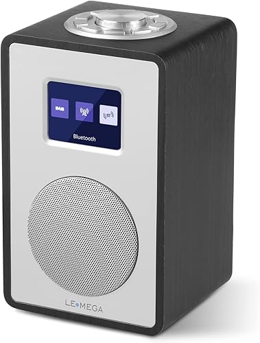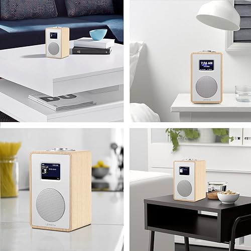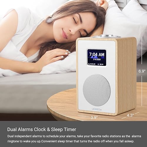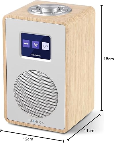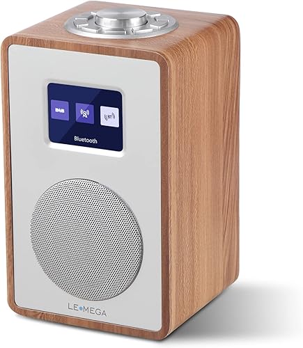 LEMEGA Radio digitale CR4 DAB/DAB+ e FM, altoparlante Bluetooth, radio DAB, doppia sveglia, timer cucina/sonno/snooze, display a colori, jack per cuffie, effetto legno, funzionamento a rete – bianco