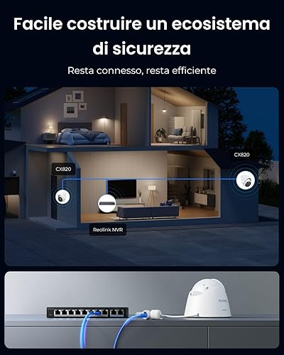 Reolink PoE 4K Telecamera Esterno, Visione Notturna a Colori ColorX, HDR, Super Apertura F1,0, Sensore 1/1,8', Rilevamento di Uomo/Veicolo/Animale, Faretti, Sirena, Audio Bidirezionale, CX820