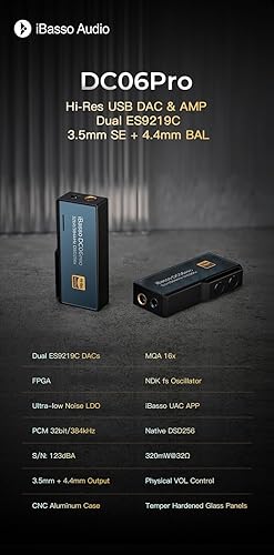 iBasso DC06Pro - Lettore audio ad alta risoluzione con uscita cuffie bilanciata da 3,5 mm e 4,4 mm, DAC USB e amplificatore per cuffie