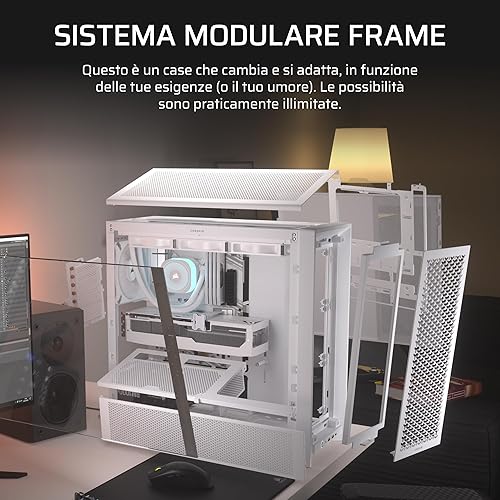 CORSAIR FRAME 4000D Modular Mid–Tower ATX PC Case – Flusso d'aria elevato, sistema di montaggio ventole InfiniRail™, ASUS BTF, MSI Project Zero, Gigabyte Project Stealth – Nero