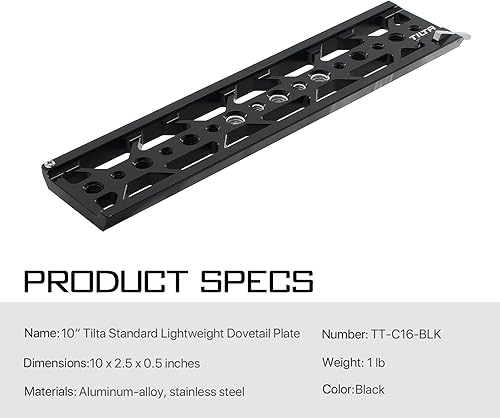 Tilta 10 'Tilta Standard Leggero Piastra a coda di rondine Compatibile con BMPCC 4K 6K GH5 S1H A6 A7 A7S3 Gabbia per qualsiasi Tilta Standard Baseplate TT-C16-BLK