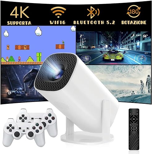 Proiettore console, P30 MAX 2 in 1 - Console retrò portatile con proiettore, proiettore di giochi retrò 4K HD, console retro, console portatile 36.000 giochi, HDMI, WiFi, APPS, 2 controller wireless
