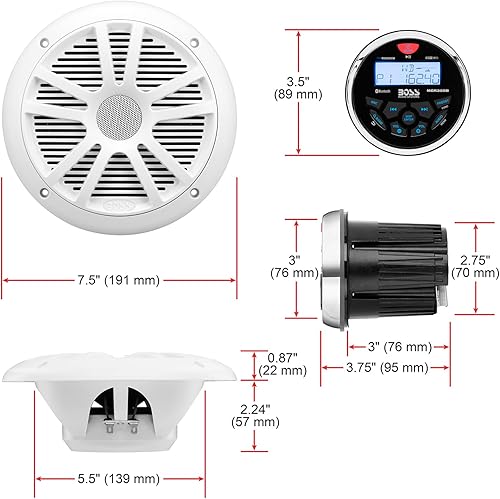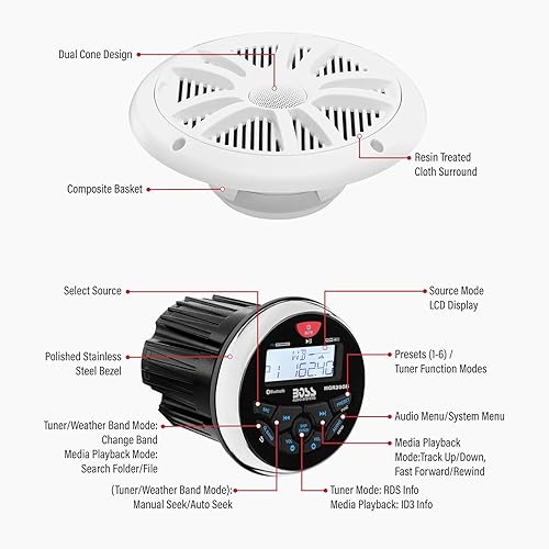 AVA ENTERPRISES INC. - BOSS AUDIO Pack MGR350B + 2 Alt. MR6W 6.5W + MRANT10 (Alt.BLANCOS), NK-162 Other, Multicolor, One Pair of 6.5 inch