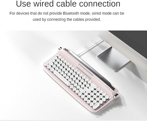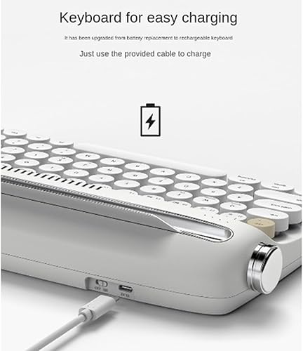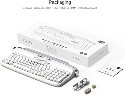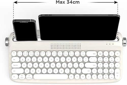 Yuattory B309 - Tastiera senza fili retrò Bluetooth per laptop, tablet, telefoni, modelli di ricarica, tastiera portatile, doppia modalità, beige