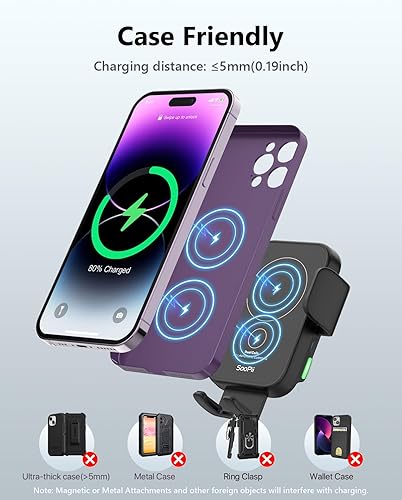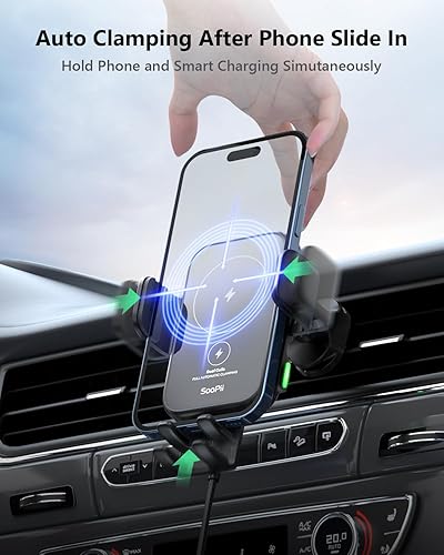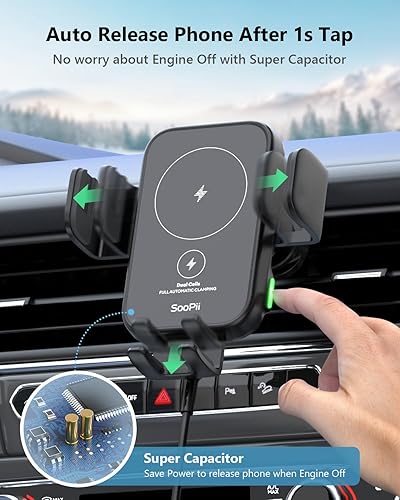 SooPii Caricabatteria da auto wireless a doppia bobina, supporto da auto per ricarica wireless con allineamento rapido e intelligente da 15 W per lPhone15 Galaxy Z Fold4/Flip4/S23