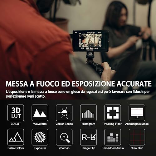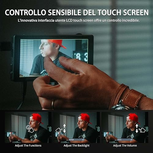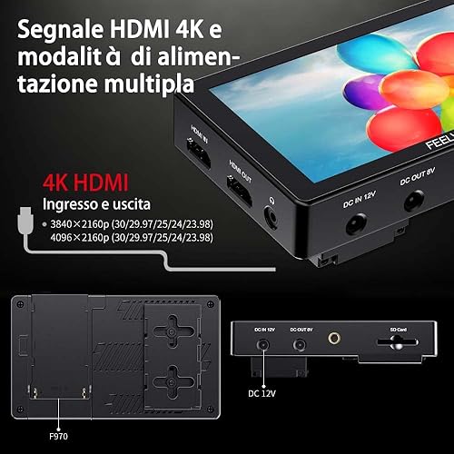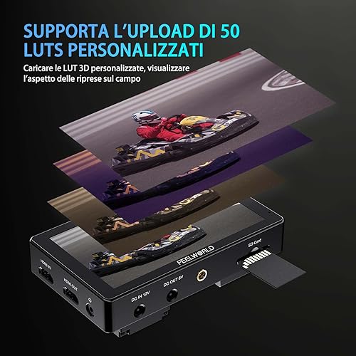 FEELWORLD LUT5 5.5' Ultra Bright 3000nit Touchscreen DSLR Live Monitor con alimentazione esterna F970 e kit di montaggio 4K HDMI Input Output 1920X1080 IPS Panel
