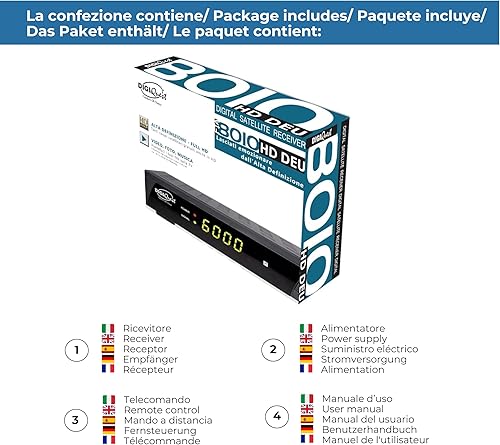 Digiquest 8010 HD DEU - Decoder satellitare Free to air DVB-S2 - funzione mediaplayer, Nero, HEVC 265 MAIN10