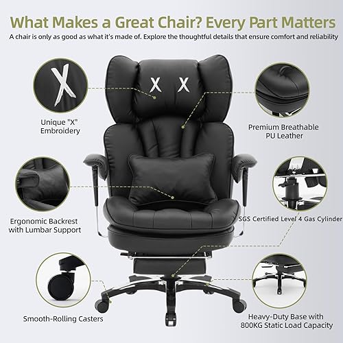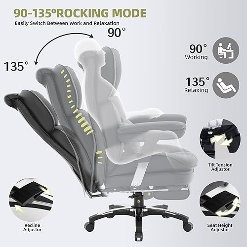 Efomao Sedia Ufficio Big and Tall, Pelle PU, Schienale Alto Regolabile, Sedia Gaming con Poggiapiedi e Supporto Lombare, Girevole 200kg