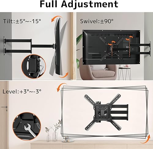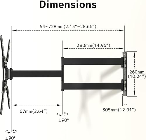 Supporto TV Parete con Braccio Extra Lungo 728mm per TV da 23-65 pollici, staffa TV angolare con supporto girevole e inclinabile a 180°, Max. VESA 400 x 400 mm, può reggere fino a 35KG