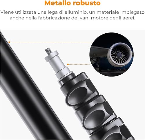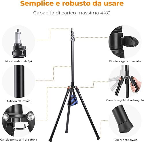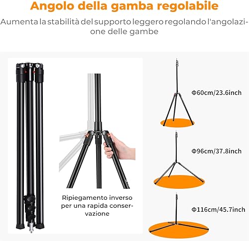 K&F Concept Stativo Fotografico 57cm-230cm,Treppiede in Alluminio Caricato a Molla Pieghevole a 180 Gradi Luce Treppiede Carico 4kg per Luce LED/Flash Stroboscopicoi/Softbox/Riflettori e Parasole