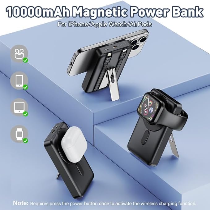 Power Bank 10000mAh con Cavi Integrati 22.5W USB A & 20W USB C Caricatore Portatile Carica Rapida Batteria Esterna 3 in 1 pieghevole Powerbank per iPhone 16/15/14/13/12, Ipad Iwatch- Nero