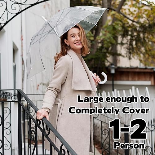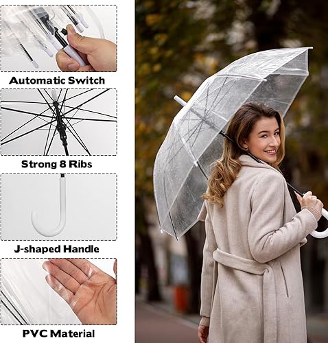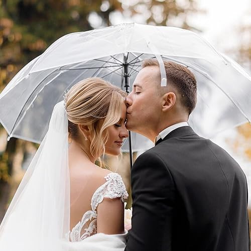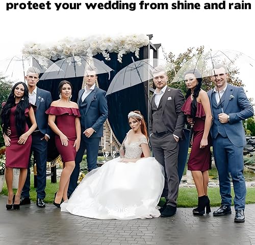 10 ombrelli trasparenti da 95 cm per matrimoni, grandi ombrelli trasparenti a cupola con 8 costole, paralume bianco semitrasparente con impugnatura automatica per donne, uomini, spose e