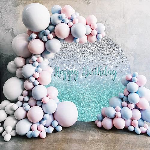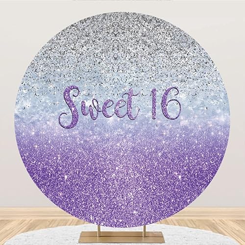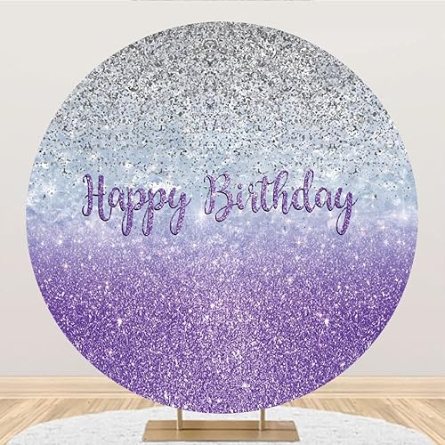 Renaiss 2x2m Buon compleanno Copri fondale rotondo Viola Argento Glitter Fotografia sfondo bambini adulti festa di compleanno torta tavolo famiglia decorazione foto studio oggetti di scena