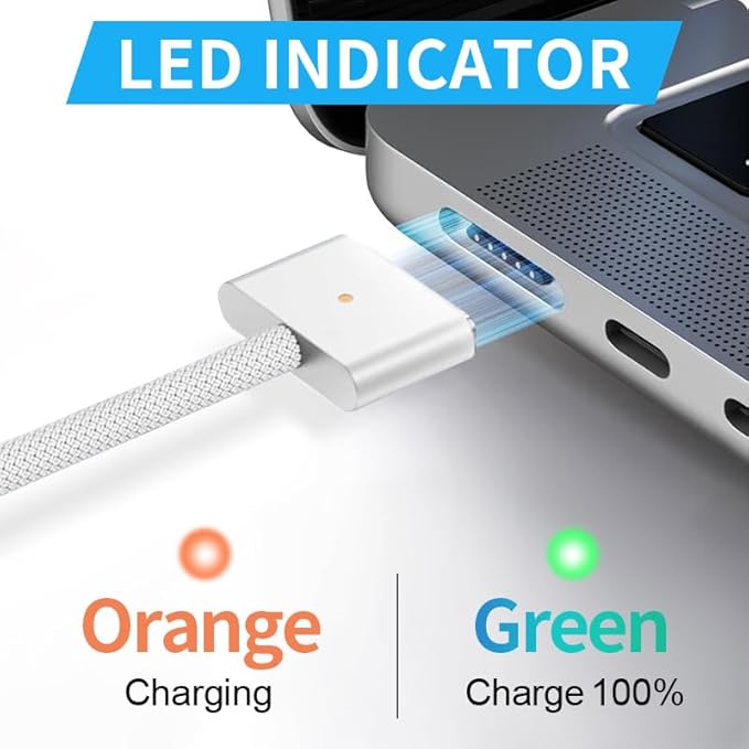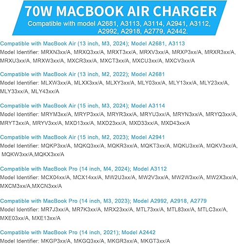 Caricatore Mac Book Air/Pro, 70W M3 Caricabatterie Mac Book con Cavo Intrecciato USB-C su Mag 3 da 2M, per MacBook Air 13, 15 Pollici (2022~2024), MacBook Pro 14, 16 Pollici (2021~2024), M4/M3/M2