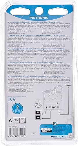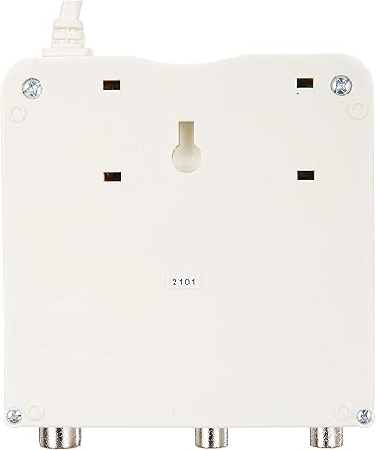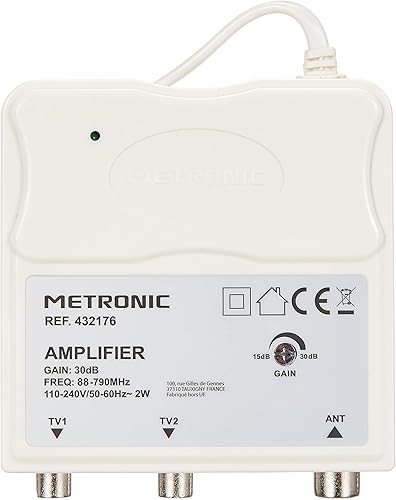 432176 - Amplificatore da interno con regolazione di guadagno FM-UHF, guadagno regolabile fino a 30 dB, protezione 4G, prese TV, diametro 9,52 mm, colore: Bianco