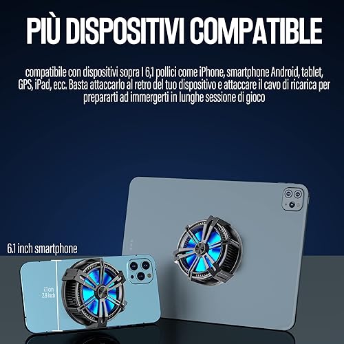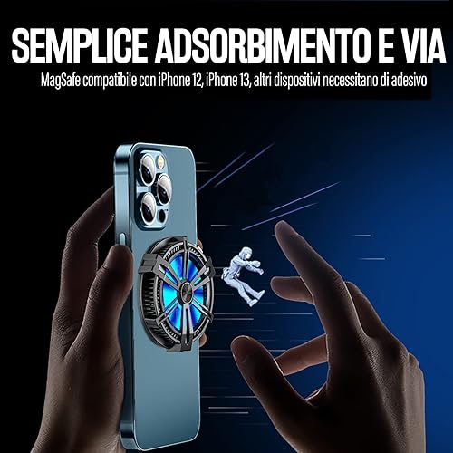 TRILINK Dispositivo di Raffreddamento del Telefono Magnetico con Ricarica Wireless, Ventola di Raffreddamento del Telefono per iPhone/Android/iPad/Tablet, Compatibile con iPhone 12/13 MagSafe-LED RGB