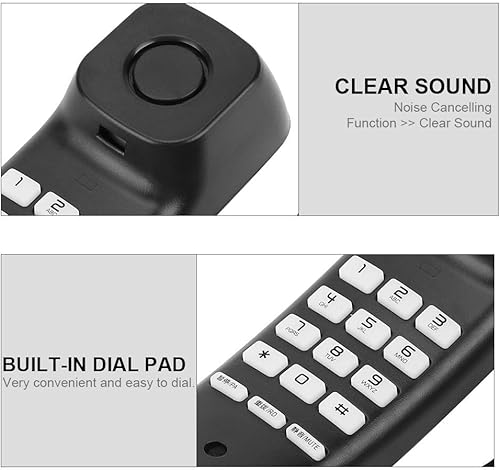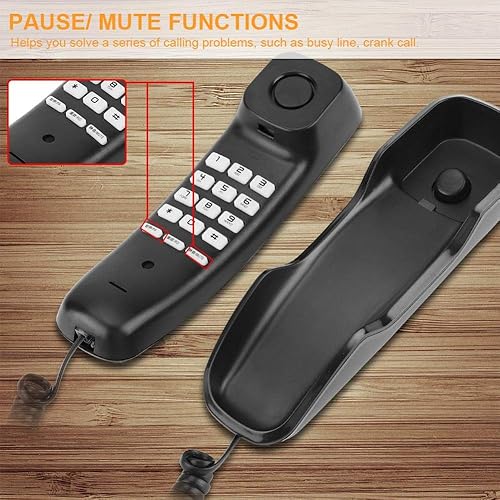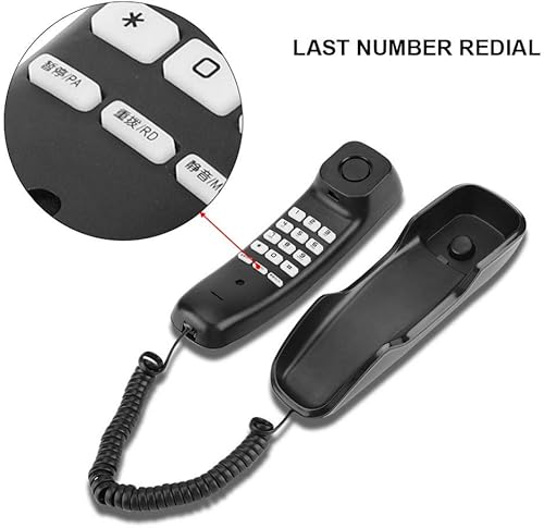 Telefono cordless a parete, funzione di ripetizione muto/mute, analogico, per ufficio, casa, colore nero