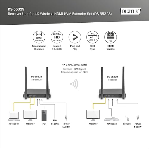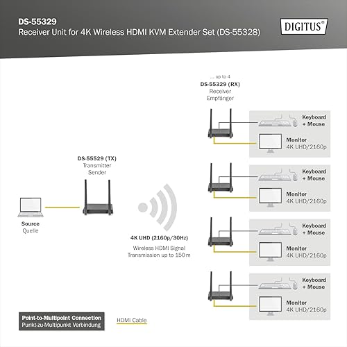 DIGITUS Extender HDMI wireless - portata 50 m - Full-HD 1080p 60 Hz - punto a punto - Plug&Play - nero-argento